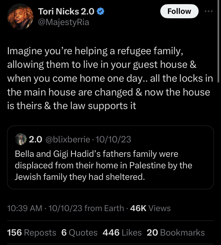 But instead, they welcomed zionists. They sold land to zionists to build colonies. They even opened up their homes to zionists and gave them shelter.